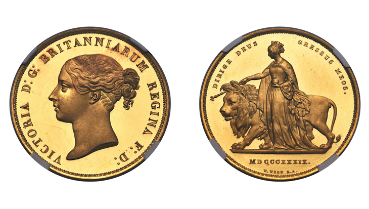 Obverse: Philippe, holding sword and resting hand upon shield, seated facing within Gothic portico; Reverse: Ornate cross fleuree with voided quatrefoil at center and leaves in quarters; all within quadrilobe with arches ending in trefoils. Lightly handled and toned, this example serves as a splendid representative of the emission.